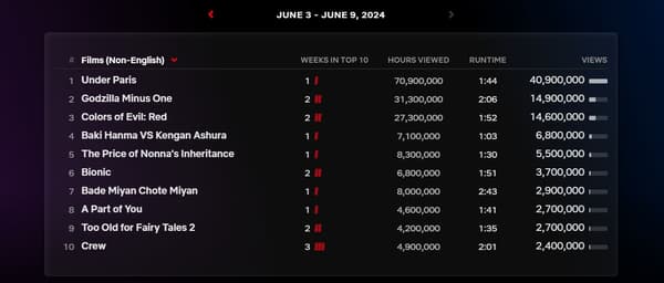 With almost 71 million hours watched worldwide this week, Under the Seine It is the most watched non-English film in the world, far ahead of the Japanese one Godzilla minus one which occupies second place with 31 million hours watched.