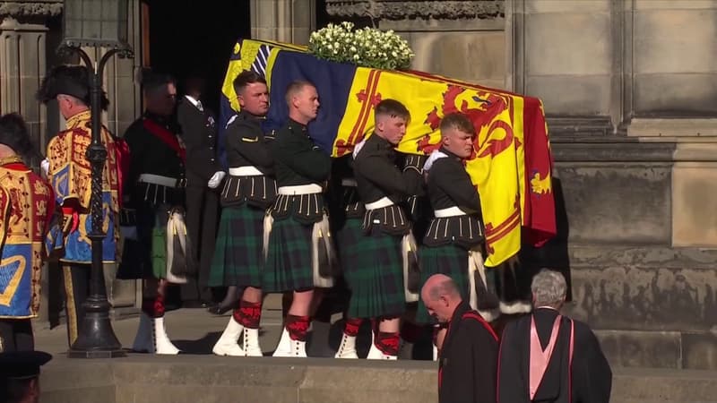 Bagpipe songs and a solemn moment. The remains of Queen Elizabeth II left Edinburgh on Tuesday afternoon. In a final procession before joining London’s Westminster Abbey, eight men carry the coffin crowned with the royal standard, and a piper parades in the forecourt.