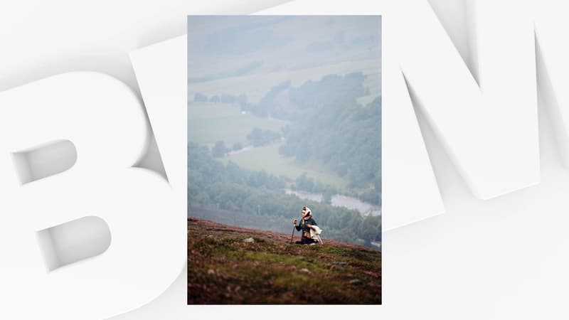 This image was published on the official Twitter account of the Royal Family. We see the monarch on the Scottish moors of Balmoral, with a cane and a headscarf.