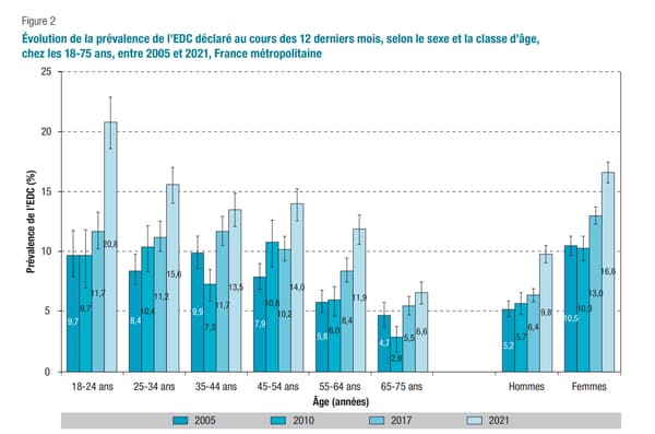 Among students, who generally correspond to the age group of 18 to 24 years, the prevalence of EDD “has doubled in the last ten years, going from 10.1% in 2010 to 20.3% in 2021,” SPF emphasizes, adding that “data from the scientific literature shows that students constitute a population vulnerable to mental health problems, even outside the context of an epidemic.”