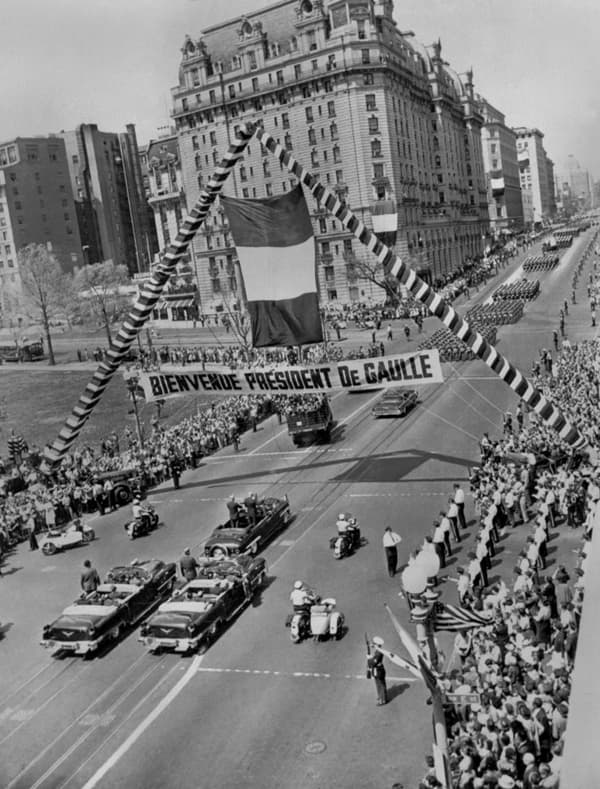 Proof of a certain enthusiasm of the American people: Charles de Gaulle parades several times under confetti, falling streamers and torn directory pages in New York, San Francisco and New Orleans, many more than those released during Nikita Khrushchev’s visit, who then led the USSR, a year later.