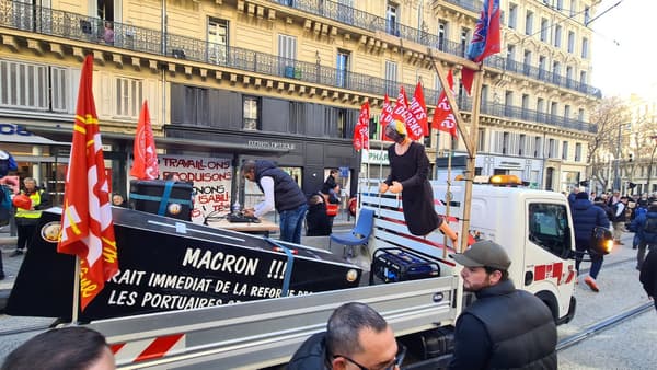 After the soccer ball decorated with the head of the Minister of Labour, it is an inflatable doll representing the Prime Minister who aroused the anger of the majority. On Saturday, in the Marseillaise march of demonstrations against the pension reform, a staging drew attention.