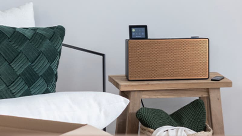 With the iStream 3, British brand Roberts puts small turntables into big ones. Simply put, this is one of the best connected radios in its class. This transistor immediately stands out from its peers with its elegant curves and cool looking retro design. Everything is enhanced by fine finishes, from the brand name engraved in gold letters to the leather-covered wooden frame. The hardest part may be choosing among the many available colors (blue, black, berry red, dark pink…).