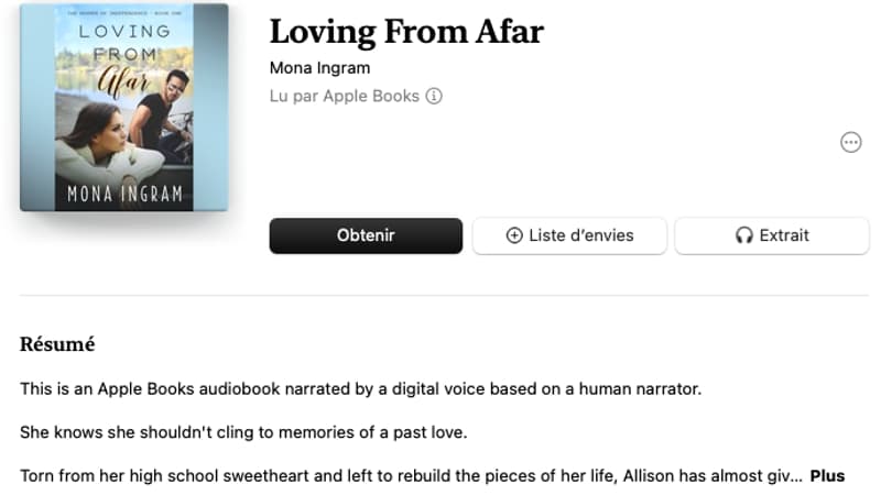 At the moment, the choice is very limited: it is only about the English language, in two versions (Madison and Jackson). The works in question are also quite limited at the moment, it is mainly romance novels, read by artificial voices, that are available. If the result isn’t unpleasant to listen to, it still doesn’t measure up to a human voice. However, everything should get better with time.