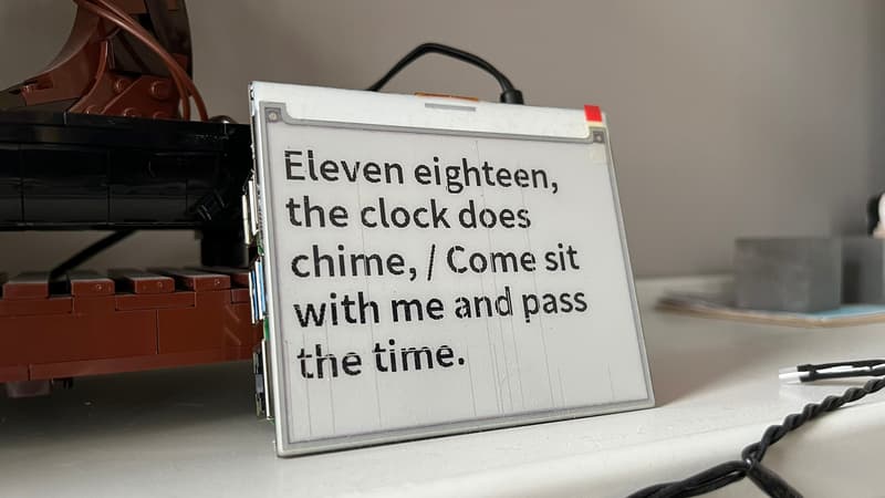 Designer and blogger Matt Webb has created a smart digital watch. At home, an electronic paper screen writes a different poem every minute to tell the time in a fun way. Everything is powered by a Raspberry Pi microcomputer.