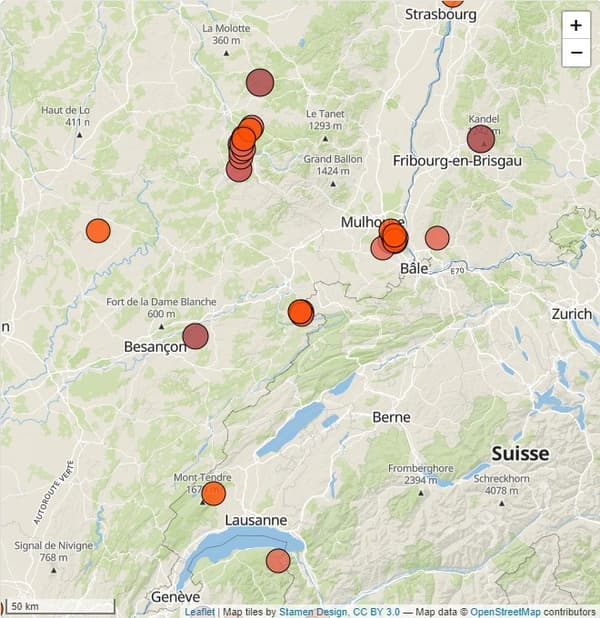 On March 22, an earthquake of magnitude 4.2 occurred 30 kilometers from Belfort, for example, and was felt in northwestern Switzerland.