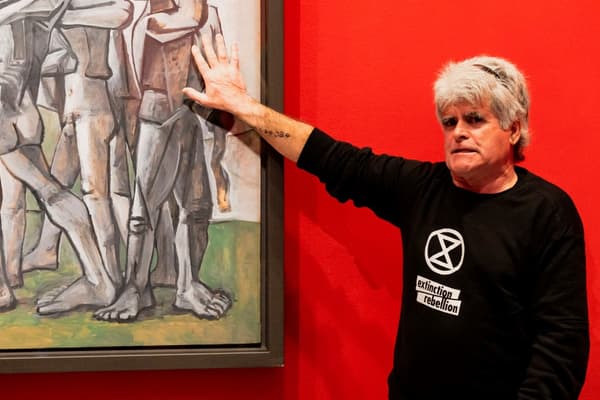 Pablo Picasso’s work, made in 1951, “shows the horrors of war,” Extinction Rebellion Victoria commented on its Facebook page.
