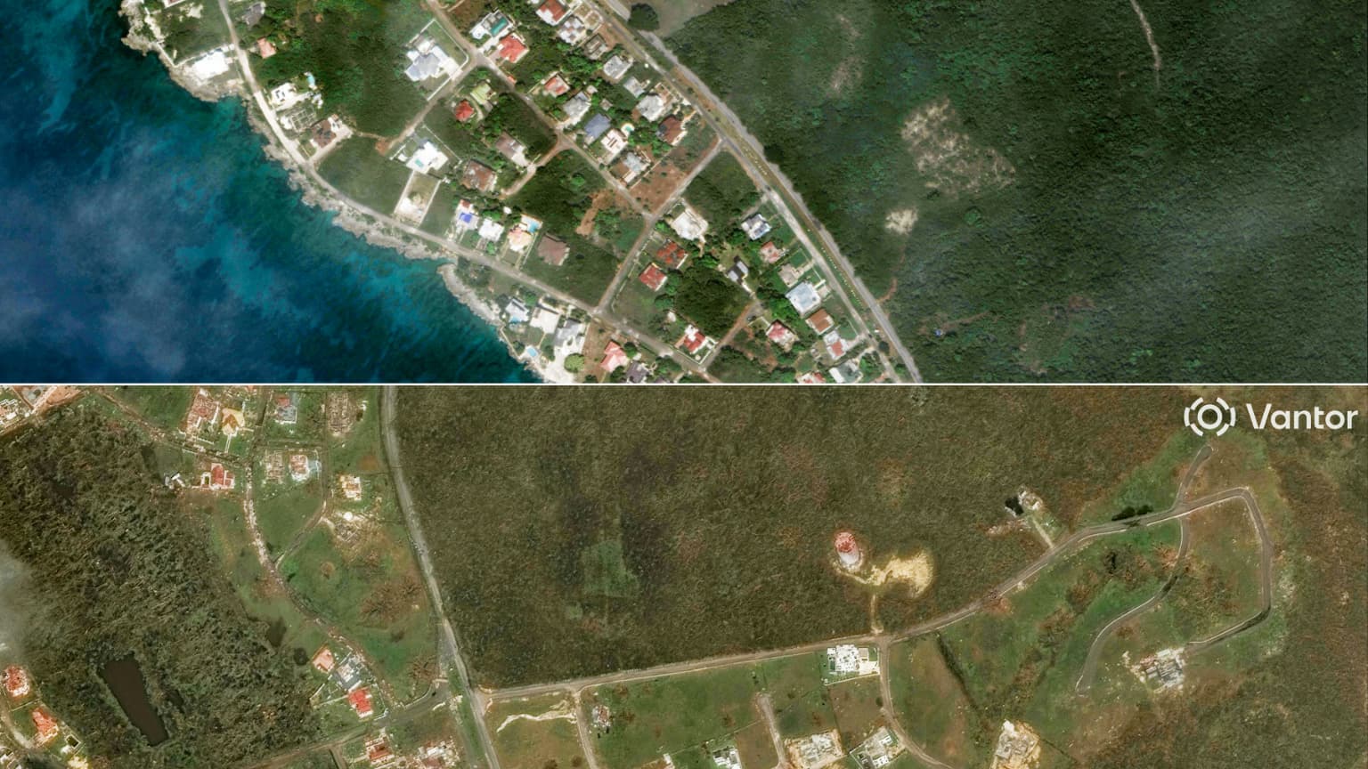 The first satellite images taken before and after the natural disaster show the change in landscape, especially in the west and center of the island.